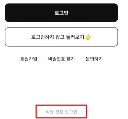 직원은 하단 직원 전용 로그인 에서 발급받은 직원번호로 로그인해 주세요.