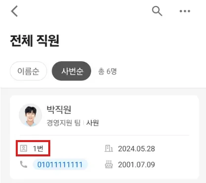 직원 기본 정보 입력 후, 상단 완료 버튼을 누르면 직원 계정 생성 완료!